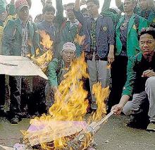 Día a Día. Unos estudiantes indonesios queman fotografías de los responsables de Economía de Indonesia, durante una manifestación para protestar contra el aumento del precio del petróleo en Jakarta.