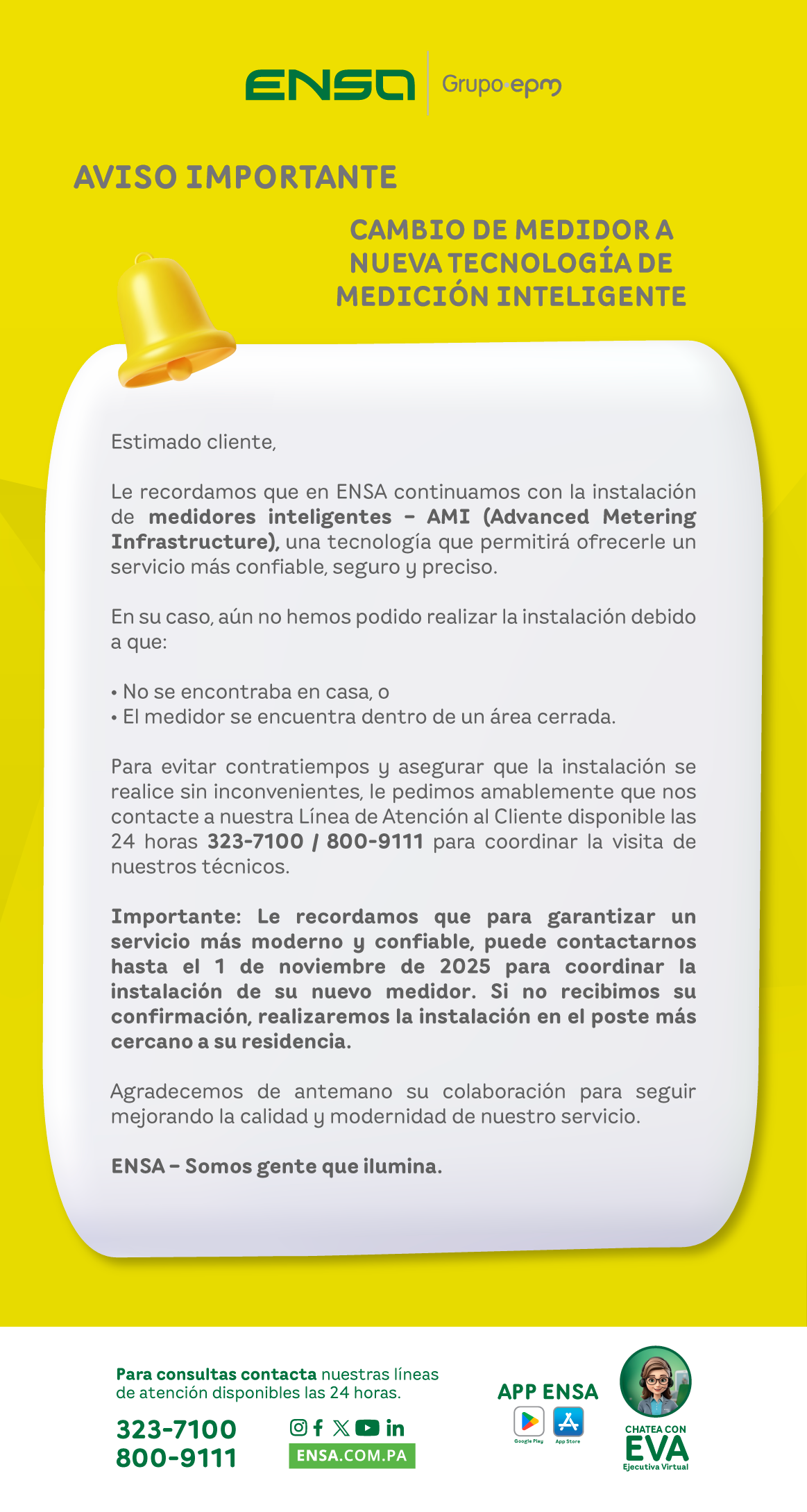 Recordatorio: Cambio de Medidor a Nueva Tecnología de Medición Inteligente